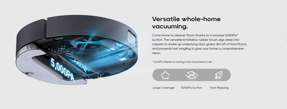با باتری 5200 میلی آمپر ساعتی، Dreame D10s Plus بدون نیاز به توقف تمیزکردن برای شارژ، با محیطهای بزرگتر هم کنار میآید که تا 280 دقیقه تمیز کردن مداوم را ارائه می دهد.هنگامی که برق کم می شود، ربات شما به طور خودکار برای شارژ مجدد برمی گردد و سپس تمیز کردن را از همان جایی که متوقف کرده است شروع می کند تا اطمینان حاصل شود که کل خانه شما تمیز می شود.