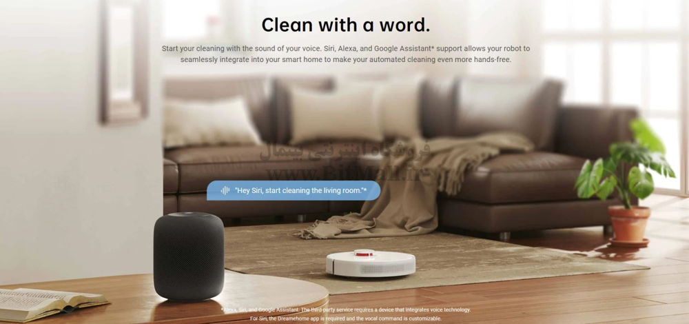 شما می توانید نظافت منزل را با صدای خود شروع کنید. پشتیبانی سیری، الکسا و Google Assistant* به ربات شما اجازه می دهد تا به طور یکپارچه در خانه هوشمند شما ادغام شود تا نظافت خودکار شما را حتی بیشتر بدون دست کند.